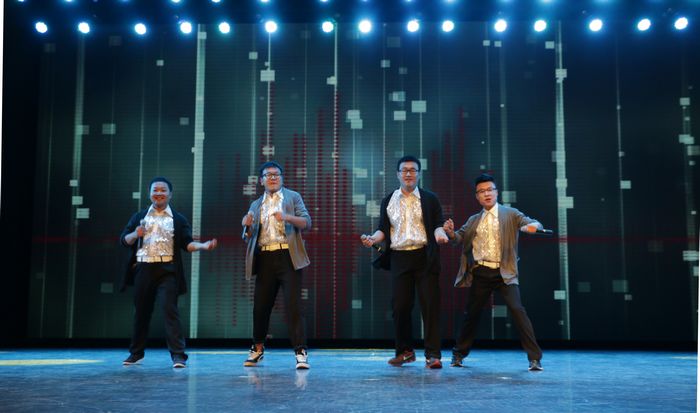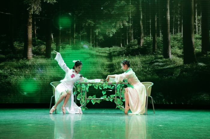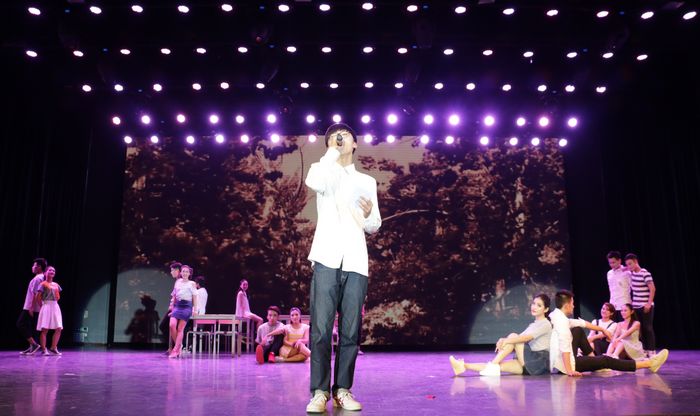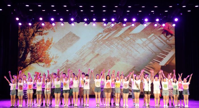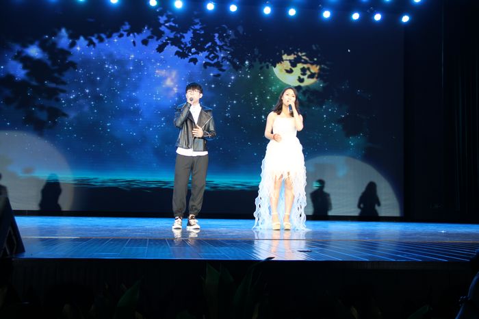 院艺术团的十余位应届毕业生,带着他们的学弟学妹,经历了努力练习和精心彩排后,为大家献上了最美的毕业礼物。演出由群舞《毕业歌》开始,激昂的音乐和多情的舞姿,都记录着同学们在校园里最美的身影;骨干歌手黄铮的一曲《白天不懂夜的黑》轻轻的诉说着细腻又厚重的感情;储呈宣一首可爱又轻快的《把耳朵叫醒》让观众如沐春风;双人舞《缠绵》唯美的跳出了最美的情愫;男声组合唱《爱的初体验》、男女声二重唱《传说》、群舞《蜕变》动人的歌声和默契的表演赢得观众的阵阵掌声;艺术团团长陆海川的独唱《那些年》、《活着》,黄铮同学和艺术团舞蹈队同学带来的表演唱《同桌的你》,储呈宣同学的独唱《秋意浓》让在场观众从一个一个意境里徜徉,总觉意犹未尽;男声小合唱《祝你一路顺风》让在场同学忍不住泪眼朦胧;双人舞《尤物》带着观众从西湖岸边跳入老上海,尽显女性妖娆;实力唱将徐武一首《最近》、艺术团声乐队《光阴的故事》、夏燚轩配乐诗朗诵《写给自己的情书》、男声三重唱《我的好兄弟》无一不在细诉对美丽校园的无尽眷恋。整场演出最后在歌舞《美丽中国》中完美落幕。演员激动不已,观众意犹未尽,场上场下满满洋溢着对校园、对青春、对祖国的无限感悟和热爱。
