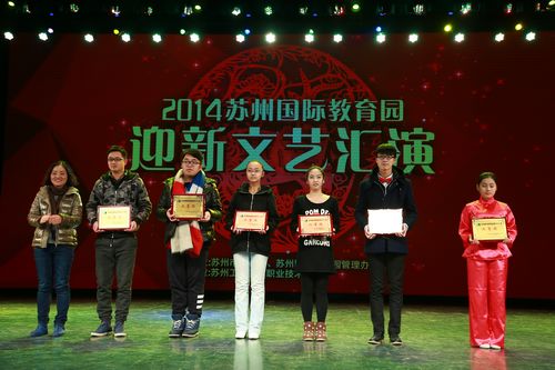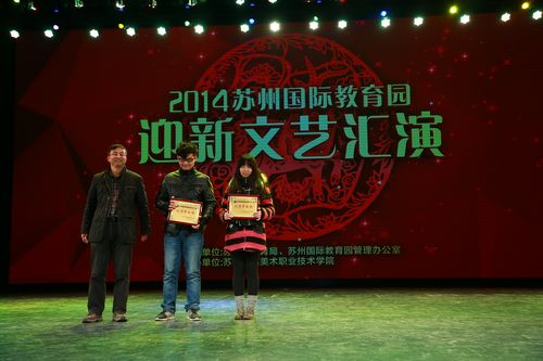 最后,国际教育园各院校领导为本次文艺汇演进行了颁奖:苏州卫生职业技术学院舞蹈《小嫚》、苏州经贸职业技术学院舞蹈《大河行》、苏州市职业大学的舞蹈《南京亮》荣获一等奖;东吴外国语高等师范学院的民乐合奏《月是故乡明》、苏州旅游财经高等职业技术学校群舞《东方红》、苏州大学文正学院合唱《卡林卡》、苏州技师学院民族舞《茉莉花》、苏州蓝缨学校合唱《在灿烂阳光下》、苏州建设交通高等职业技术学院演奏舞蹈《菊花台》荣获二等奖;苏州工业职业技术学院小品《百变大咖秀》、苏州科技学院短剧《再见首末站》荣获优秀奖,苏州工艺美术职业技术学院舞蹈《阳光下的我们》凭借专业的编排、精湛的表演,得到了在座评委的一致好评,最终夺取了本场演出的桂冠,荣获了特等奖。