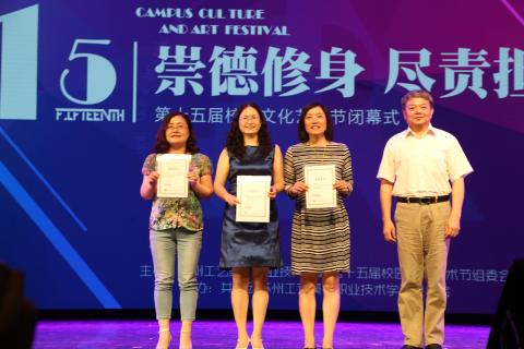 期间,为鼓励各承办单位把活动办出水平、办出特色,组委会本着公平、公正、公开的原则,评选出了本届校园文化艺术节的专项奖3个、优秀活动奖7个和优秀组织奖3个在闭幕式中做了一一揭晓,王建良书记分别为“优秀组织奖”、“一等奖”获得单位颁发了荣誉证书;曹雪明副书记为 “二等奖”获得单位颁发荣誉证书;张华副院长为“三等奖”获得单位颁发荣誉证书;刘珽华副院长为“专项奖”获得单位颁发荣誉证书;党委委员、公共基础部陈俊主任为优秀活动奖获奖单位颁发荣誉证书。院领导们与获奖代表一一合影留念,并一同观看了由bet57365最快检测中心承办的闭幕演出。本次闭幕演出以一首《青春修炼手册》歌舞开启了文艺演出。演出中,公共艺术中心大学生艺术团的多位毕业生带着对母校和老师的不舍,为大家奉上了毕业前最后一场精彩的演出。