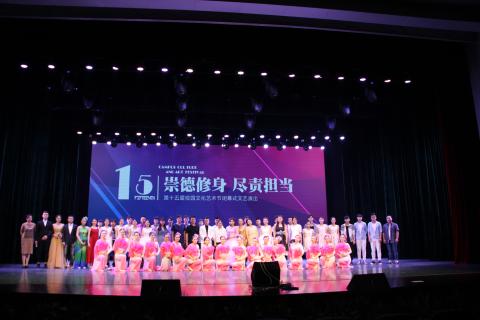 在六月缤纷的校园里,伴随着同学们牵系、不舍、祝福和满满的希冀,学院第十五届校园文化艺术节自4月25日开始,历时近两个月,于6月24日下午3 :00在演艺大厅落下帷幕。出席闭幕式的领导有学院党委书记王建良,党委副书记曹雪明,副院长张华、刘珽以及各相关行政处室负责人、系部正副书记等。在一段记录文化艺术节活动集锦VCR播放后,闭幕式正式开始。