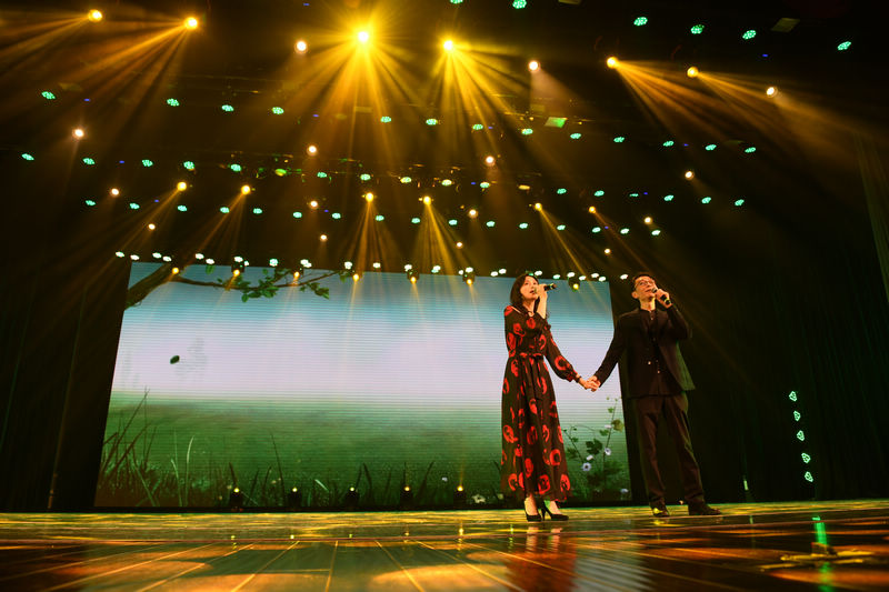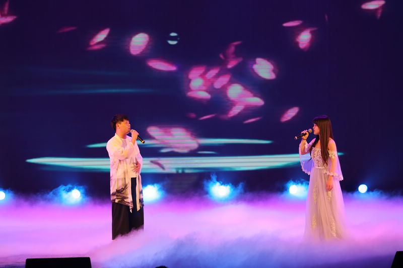学院大学生艺术团的男女声对唱《凉凉》幽幽的意境,倾诉般的歌声向观众道出一段凄美的爱情故事。