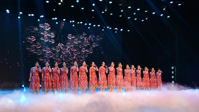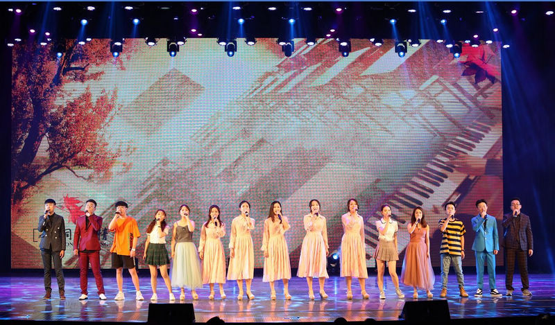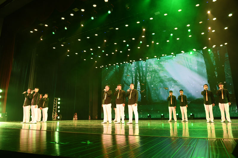 学院大学生艺术团合唱团的男声小合唱《森林水车》用饱满的激情、轻快流畅的旋律,致敬中外经典名曲。