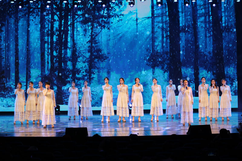 学院大学生艺术团合唱团的女声小合唱《白桦林》以唯美的和声效果、新颖的舞台创意,呈现出美轮美奂的视听审美享受。